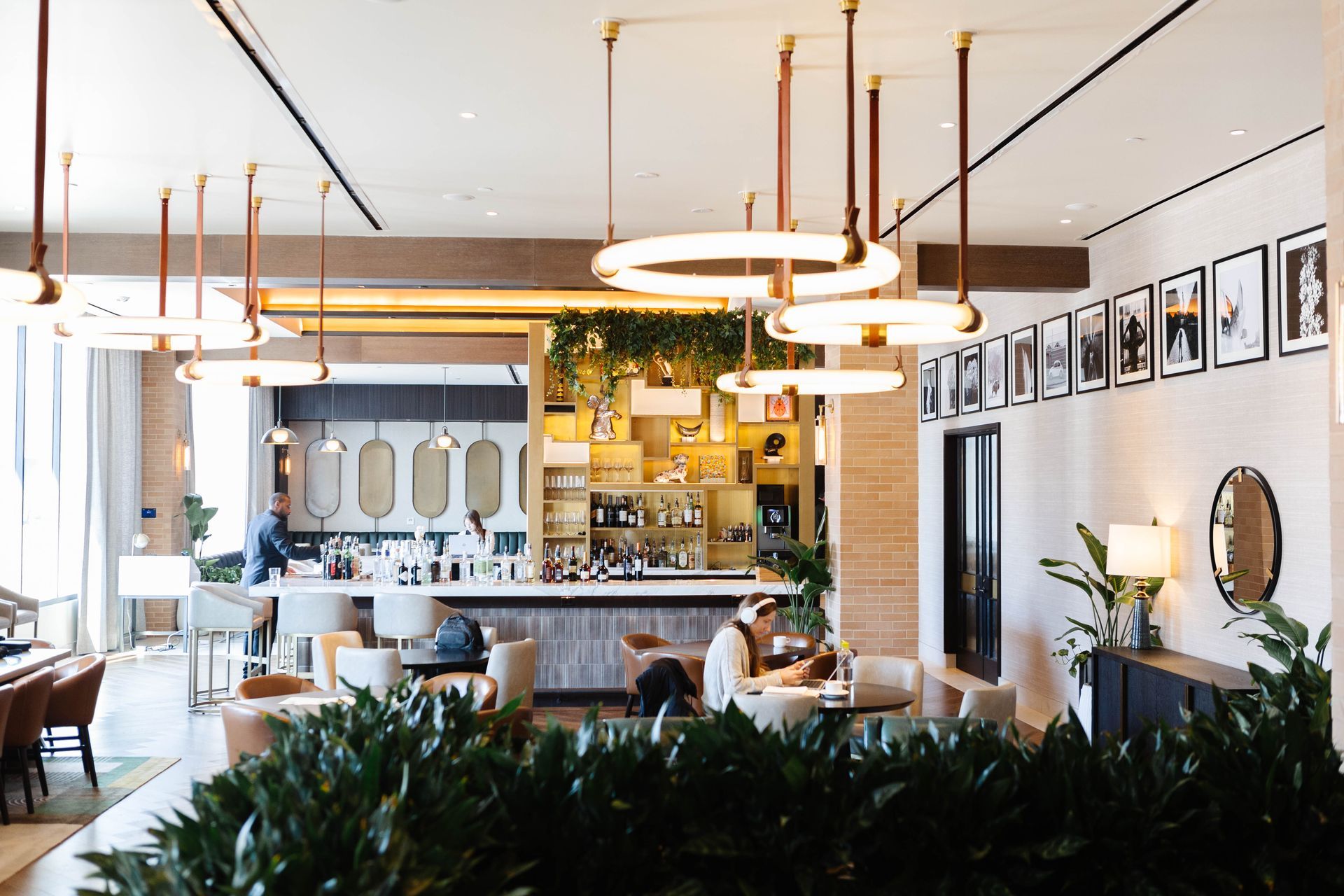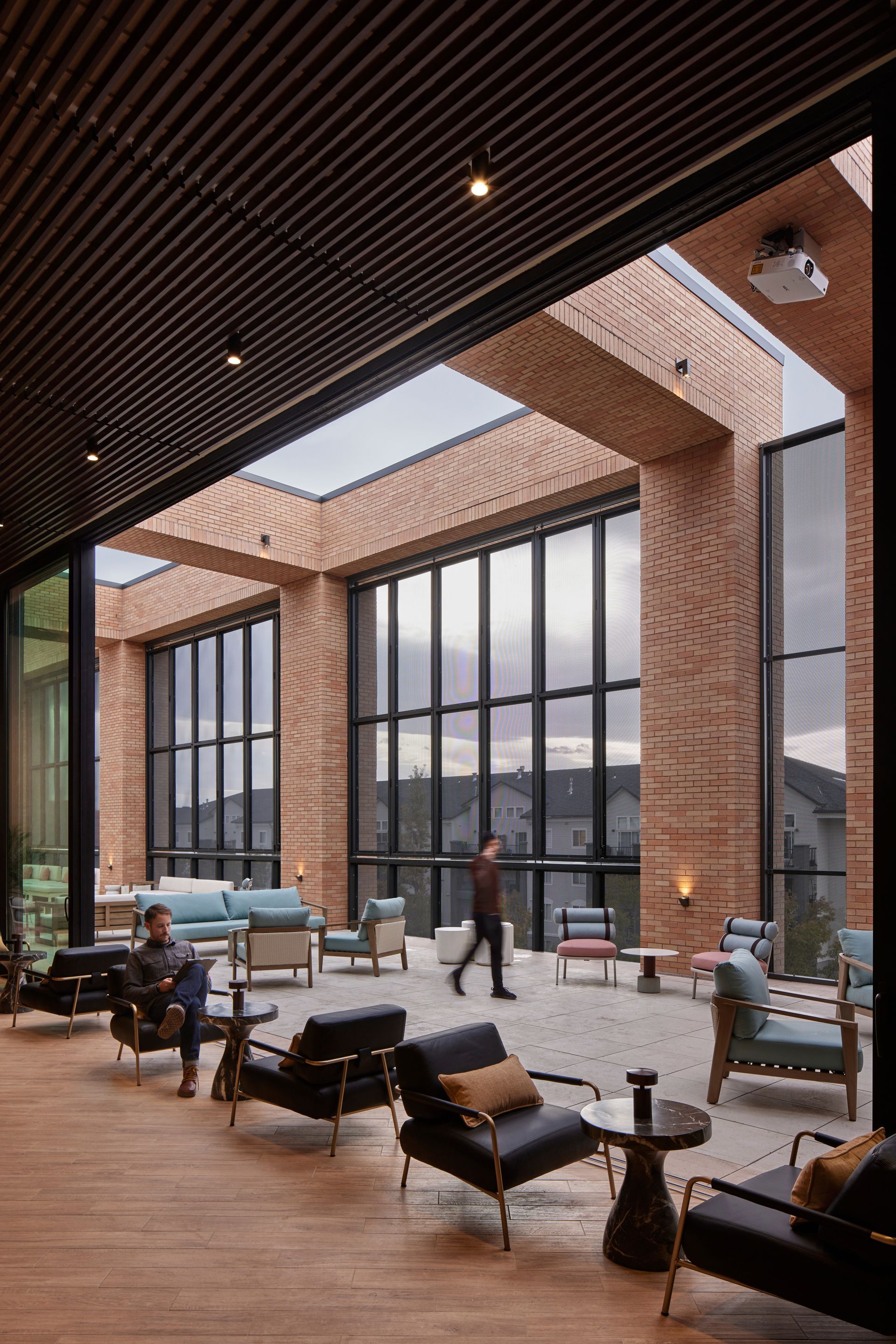 Tursic appreciated the consistency of the interior design and how designers embraced the exterior brick by allowing it to resurface as an interior material in several strategic locations, unifying the exterior and interior material palette.