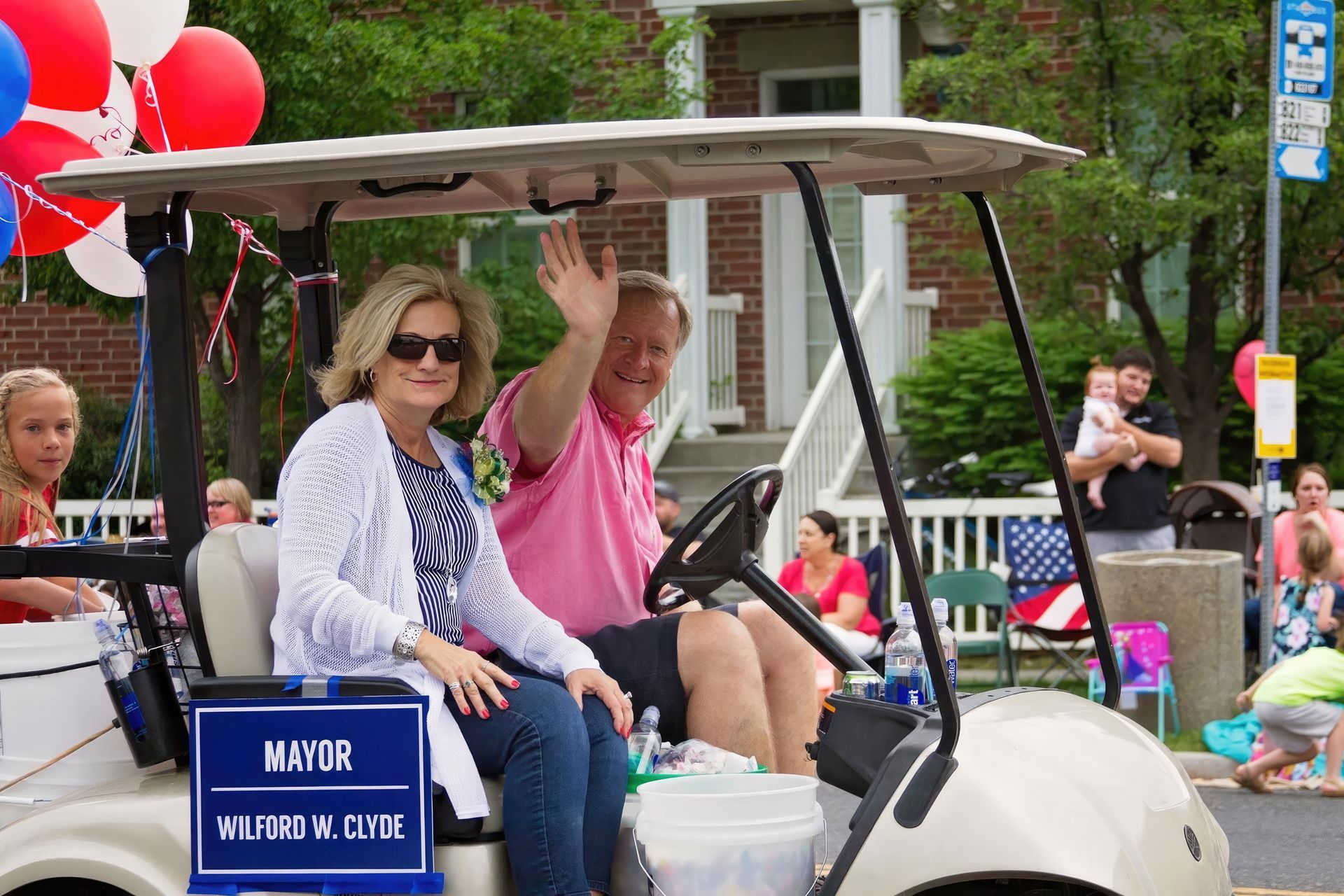 Man of the people: Clyde, shown riding in a parade with wife Natalie, served as Mayor of Springville—his hometown—from 2009-2017, in addition to participating on many other business and community-related endeavors. Right: Wilford and Natalie Clyde and their immediate family.