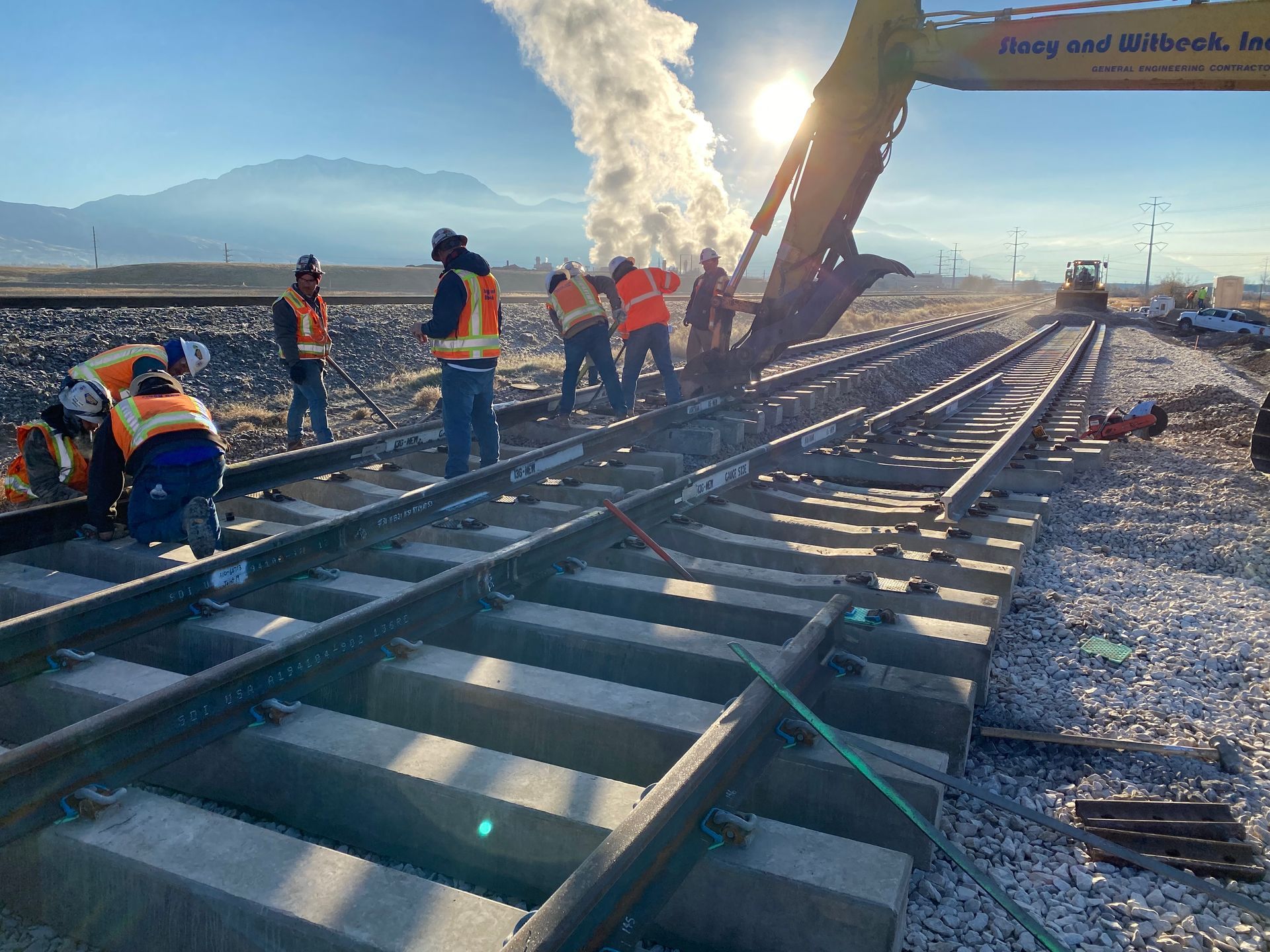 “In collaboration with UTA/UDOT, we scheduled this work for the week of Thanksgiving to take the track out of service,” said Olmstead. “We started Saturday before Thanksgiving and ran through the Sunday after Thanksgiving.” Workers labored around the clock, even deep frying a turkey on the job site to bring the holiday to work.