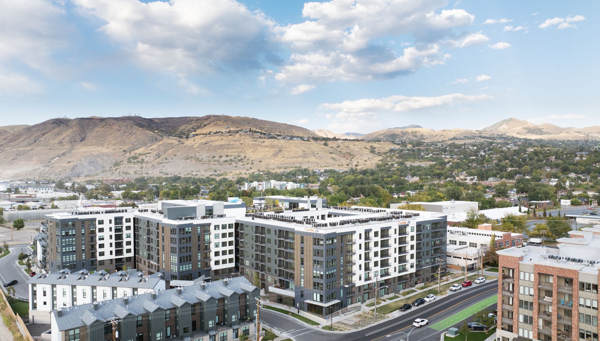 Stribling credited landscape architects Kimley-Horn for helping to situate the outdoor programming elements, where the dedication given to the ground floor courtyard is matched eight floors above. Their thorough research and advocacy in design resulted in an emphasis in both mountain and downtown vantage points along two axes. Residents can pass up through the eight floors and experience tremendous views of Salt Lake’s blossoming downtown as well as the nature that has served to root so many people to Utah’s capital city.