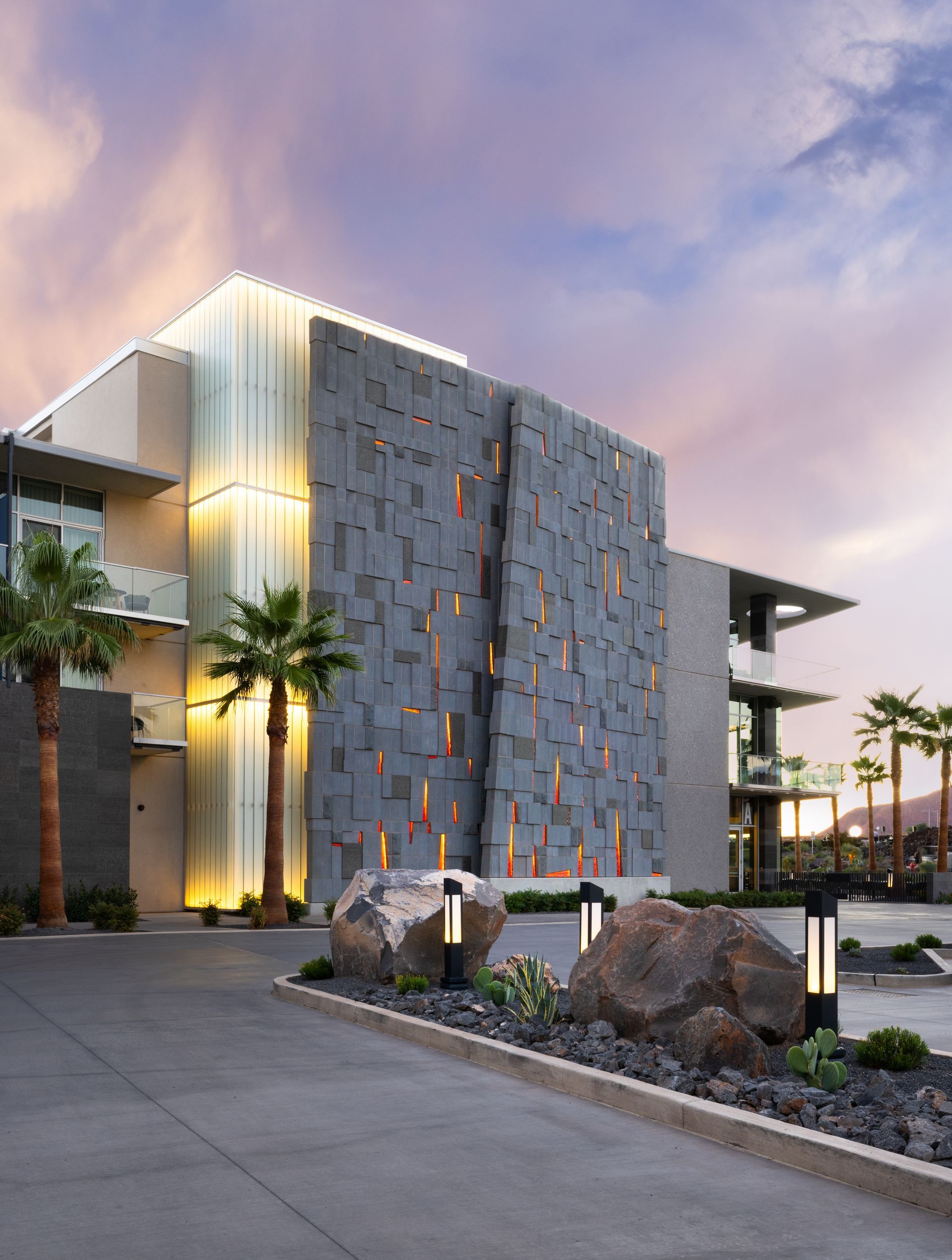 Building B houses Black Desert Resort's conference center, which features more than 45,000 SF of indoor and outdoor space, featuring 18 distinct venues: a 10,000-SF ballroom, five breakout rooms, plenty of naturally lit spaces for socializing, and an expansive outdoor lawn with room for 500 guests. Conference center lobbies feature honed marble walls and rich millwork on doors/openings to the ballrooms.