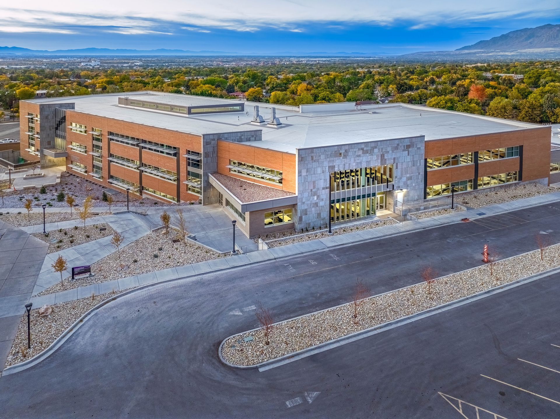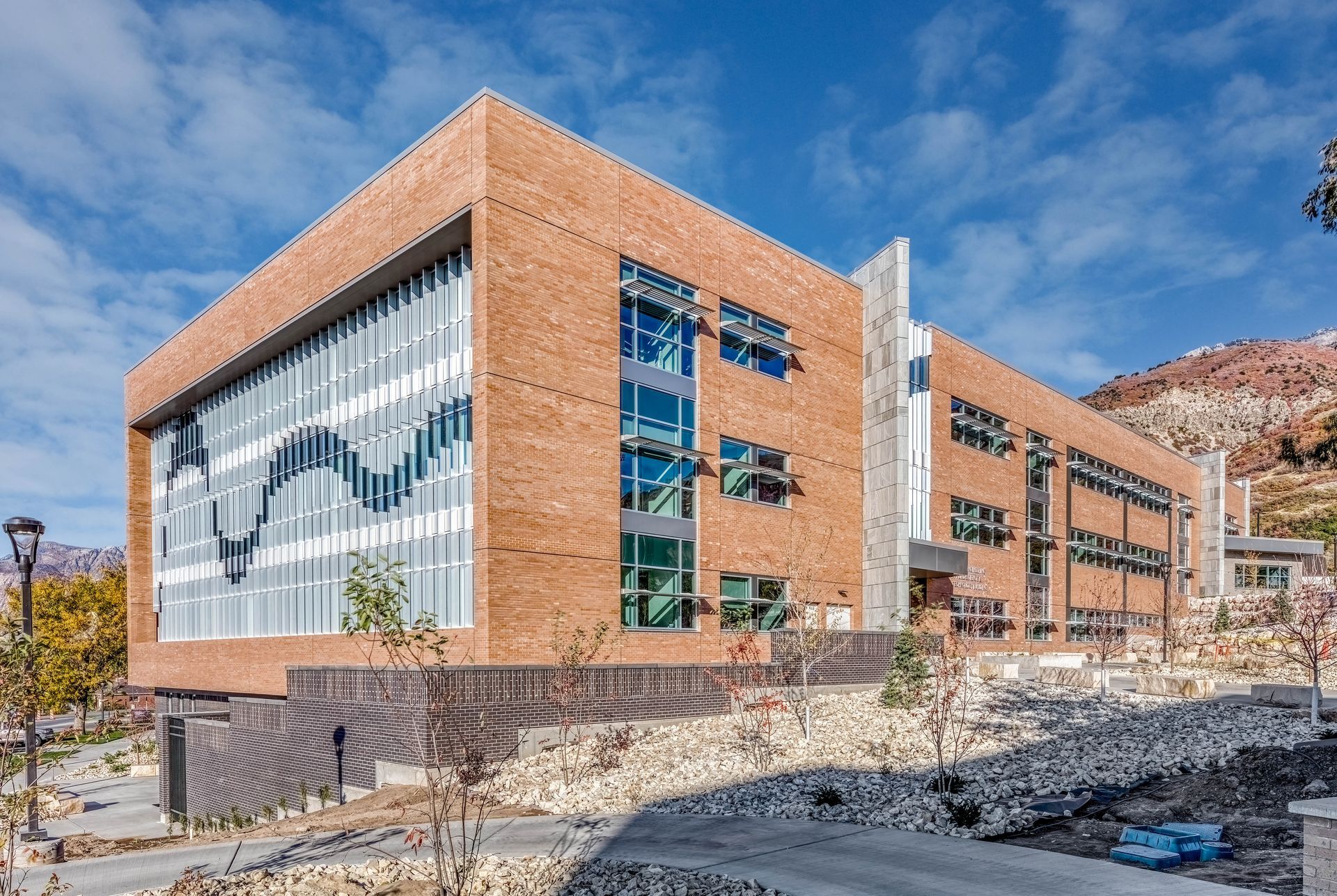The mountainside campus at Weber State University is especially vibrant on a rainy fall day, and standing nice and new is the 130,000-SF Noorda Engineering, Applied Science & Technology Building.