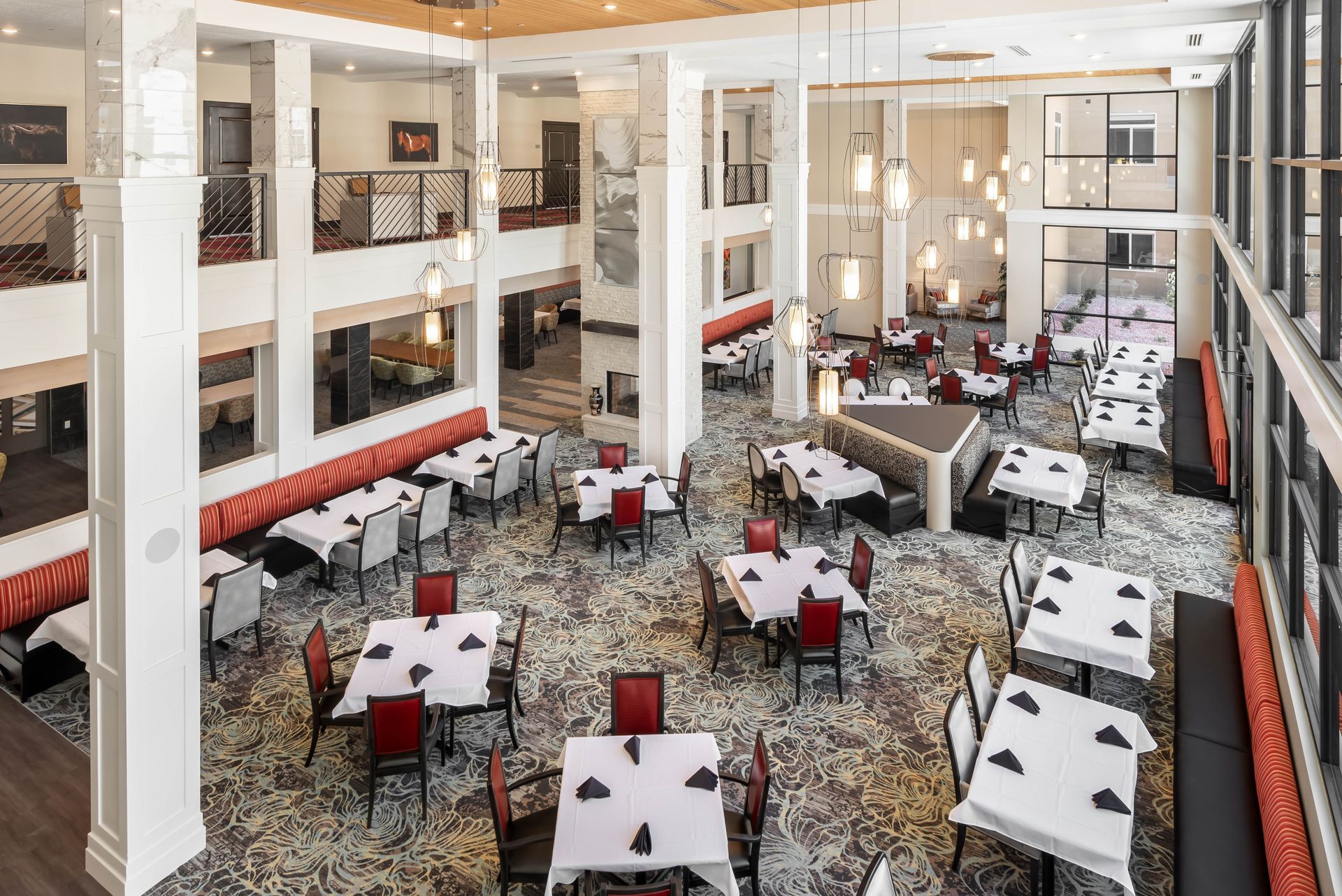 High-end luxury finishes are a staple throughout the facility, with scores of eye-popping design elements to appease the senses. Functionality is a hallmark of the overall design, as Legacy Village serves clients on three levels: independent living, assisted living, and memory care.