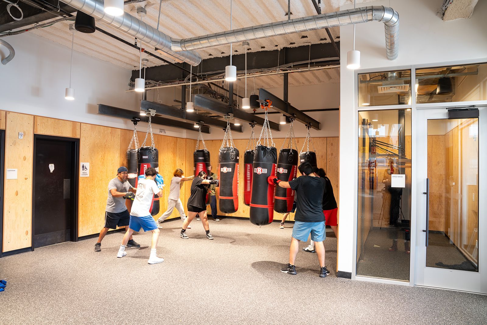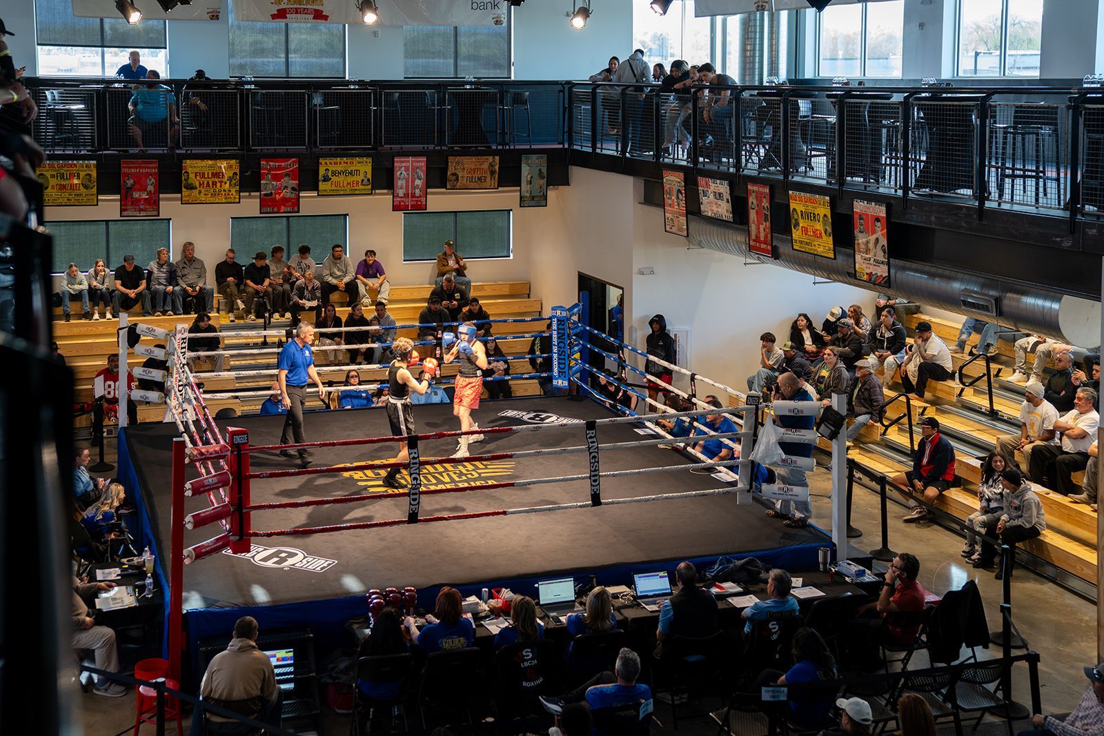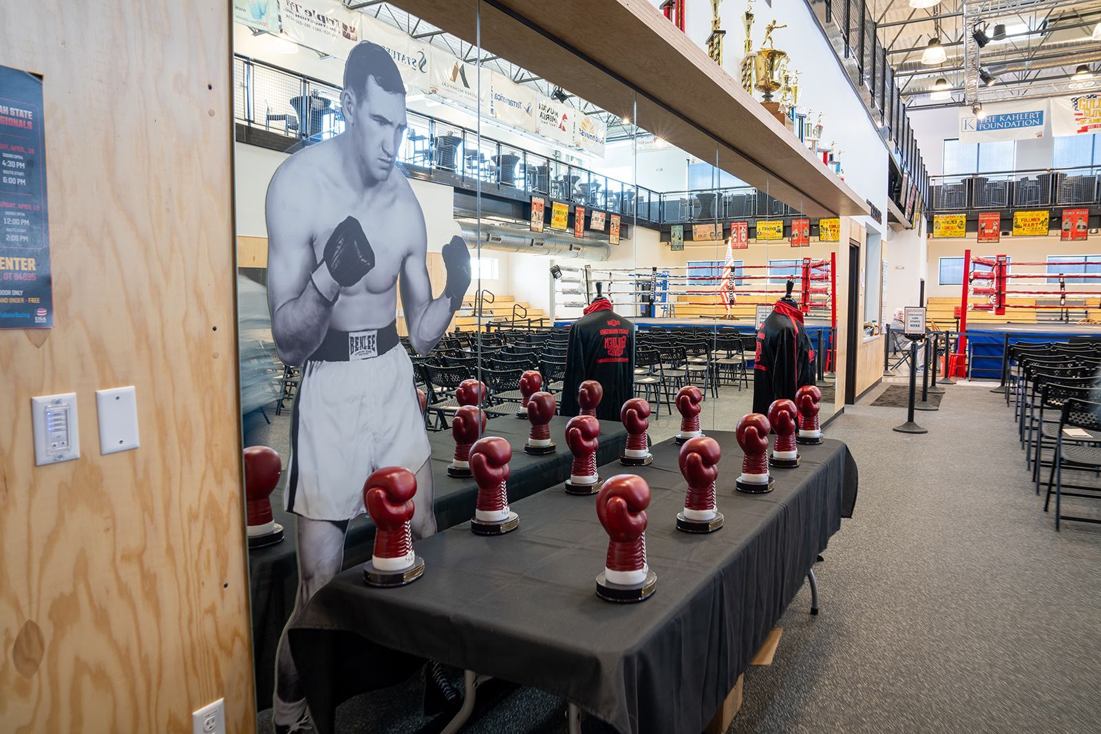 In addition to a state-of-the-art competition boxing ring and seating, the facility sports top-notch locker rooms and training equipment, including heavy bags, speed bags, weights, etc.