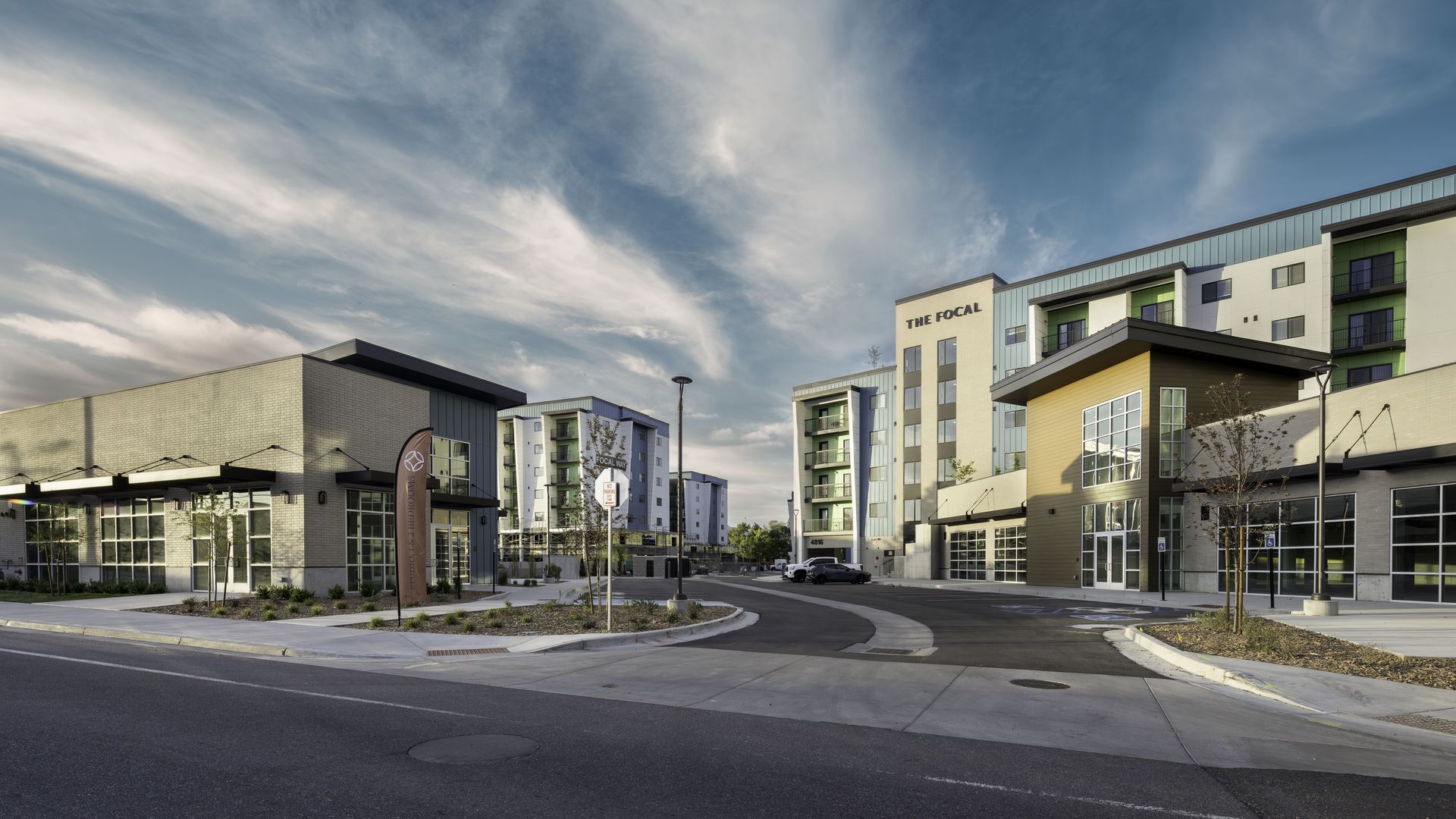 Architect Beecher Walker and builder Pentalon Construction are nearly finished with The Focal—a three building mixed-use project in Murray. The development contains top-tier amenities for the tenants of the 400-plus units and, in a new trend, a shared community amenity in the form of ground-floor retail and a portion of two podium level plaza features—approximately 8,700 SF of the total 23,900 SF of podium and rooftop amenities.