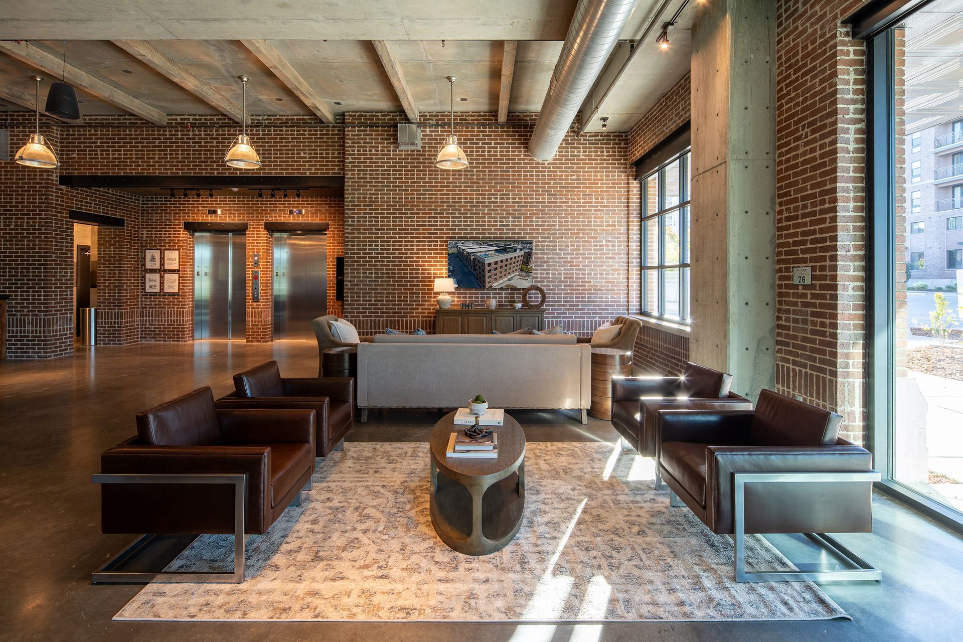 Interiors are similarly sweet, with a mix of lumber and concrete ceilings combining well with interior masonry, massive windows, and elegant furniture and lighting to create warm and inviting common areas. All units contain two large windows, with floor-to ceiling windows in corner units, daylighting every unit from floor to 10-foot ceiling.