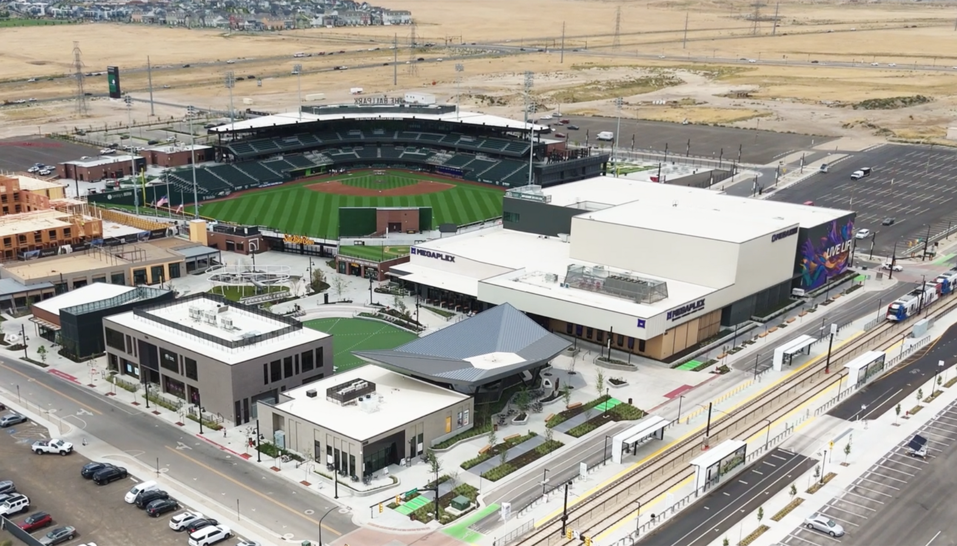 —The development of Downtown Daybreak, a 200-acre parcel that this year saw its 30-acre Phase I debut with the completion of the Salt Lake Bees' new 8,000 capacity stadium—dubbed The Ballpark at America First Square—in April, followed by a new Megaplex cinema entertainment center in July with luxury theatres, bowling, games and a scratch-made kitchen in addition to an open air plaza. A seven-story, 190-unit multi-family development is currently under construction and rising along the right field bleachers, with views that will look down into the ballpark upon completion next year.