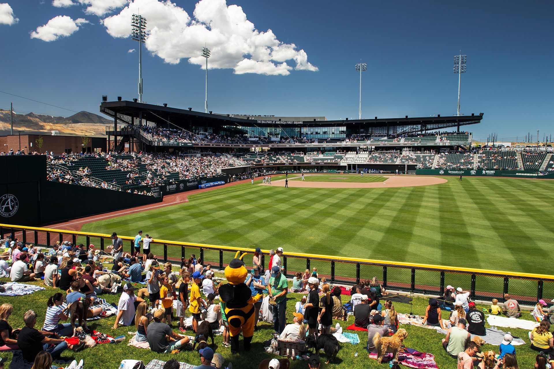 "In another two seasons, you'll have this urban setting for the ballpark that frames the mountain views. [The design is] really intentional, and I think it will bring a finished edge to Downtown Daybreak," said Holmes. "It was a process trying to figure out the best location, site plan, traffic, but it's in a great spot. The goal for us was to make it feel like it fit in with the community, almost like having a baseball stadium inside of a park, with an open corridor that connects to a plaza."