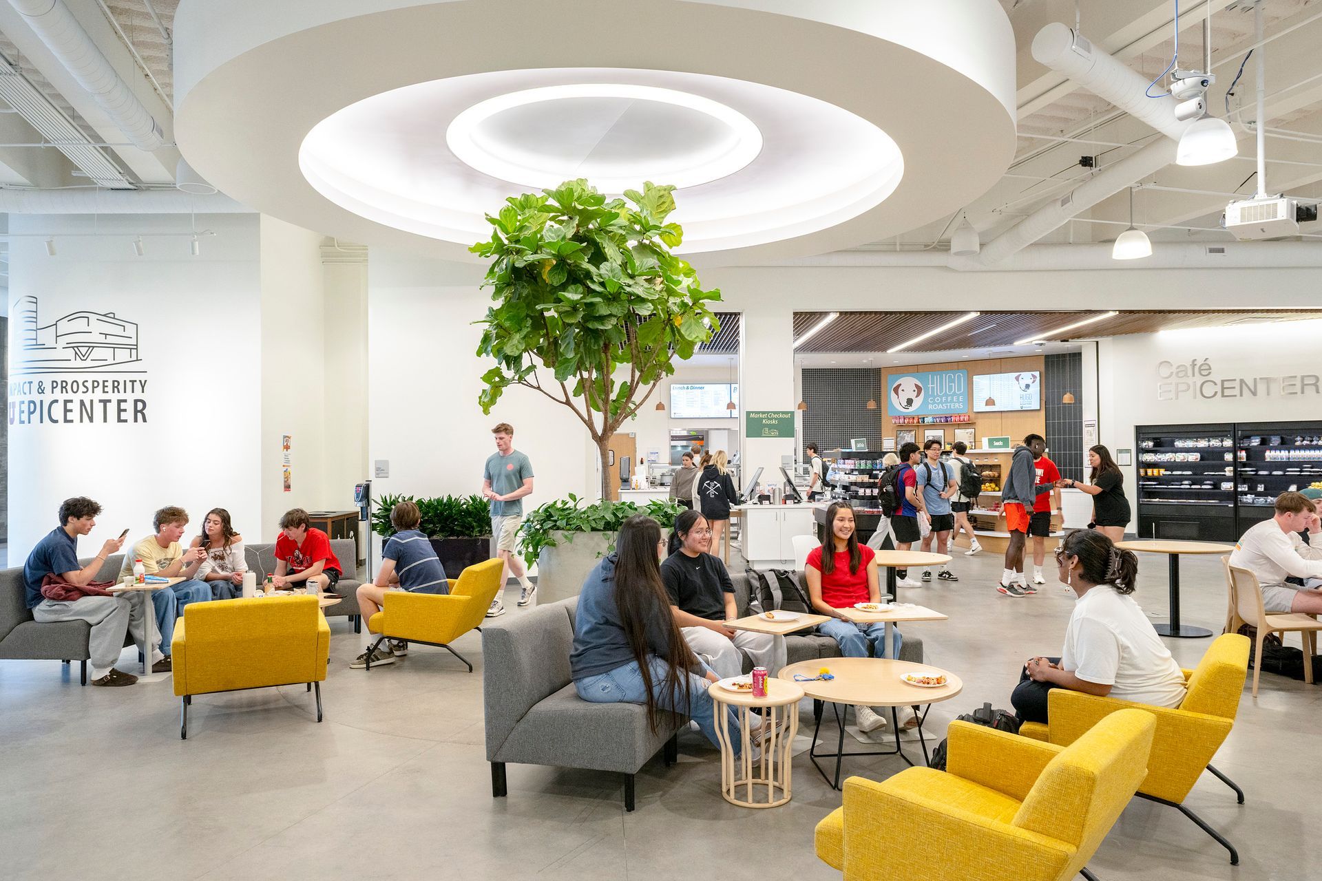 By daylighting the area and using durable materials, furniture, and finishes, this key part of the Epicenter can be embraced and utilized to its fullest extent.