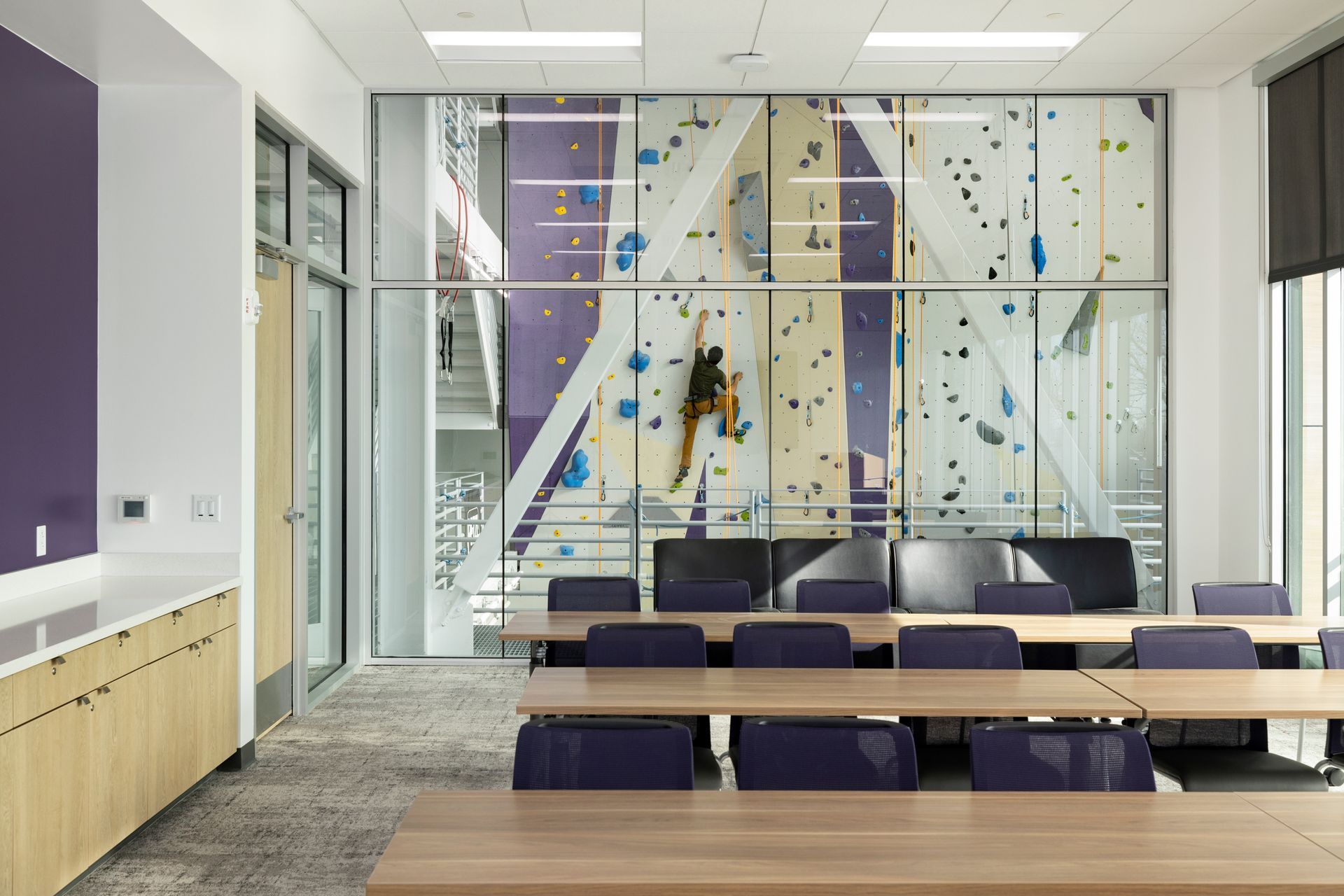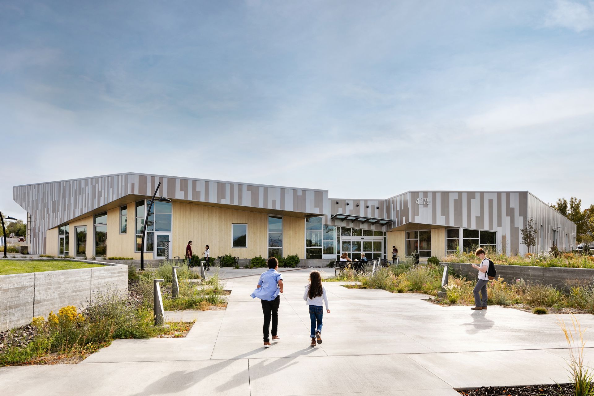 Nested in the middle of the University of Utah (U of U) campus sits the aptly-named Impact & Prosperity Epicenter, the second living learning community (LLC) project designed on campus by Los Angeles-based Yazdani Studio of CannonDesign. After nearly a decade since their first LLC project, the award-winning Lassonde Studios (UC+D’s 2016 Most Outstanding Public Building over $10 million), Mehrdad Yazdani, the design firm’s Principal and Studio Director, said their work on a sequel was an exciting prospect for the firm, and enlisted Salt Lake-based MHTN Architects and Okland Construction to serve as the respective local architect and general contractor. Today, the Epicenter serves as a striking piece of architecture and construction, one whose curvilinear shape asks users and visitors plenty of questions. But moving from idea to execution has been a work in progress. One query from Yazdani stood out as it relates to students and the built environment, and helped begin the journey to create the Epicenter: “How does your living environment as a student impact your success as a student and as a changemaker?” A Project for an Evolving Campus Katie Macc, CEO of the Sorenson Impact Institute, said LLCs like the Epicenter and Lassonde Studios next door have been massive steps forward in advancing entrepreneurship and social impact. But both play a major role in creating “college town magic”—a phrase coined by University President Taylor Randall that invokes a vibrant campus where students can find community and have one-of-a-kind experiences. With more on-campus student housing in the works, the state’s flagship university is hoping to shed the “commuter school” label and deliver a level of desirability that matches the resources students commit to higher education. “There is some soul searching going on across university campuses,” said Macc of the challenge at hand. “We have to be convincing that going to college matters.” She said overall university enrollments across the nation are decreasing as students grapple with tuition costs, COVID and its isolating aftershocks, and a different perspective on higher education. Universities are no longer a place where students come to learn what they couldn’t learn elsewhere—remote learning and the internet have opened a fissure in that idea that will never close. Instead of that educational transaction, being at a university must include building community and creating in-person experiences only available on campus. Macc said that the Epicenter helps steer the campus experience toward the future, with design goals to create a base of operations for two changemaking organizations and a living and learning home for 778 students. The three-story commercial portion of the building, known as the “Changemaker Pavilion”, includes office space for The Center for Business, Health, and Prosperity (second floor) and the Sorenson Impact Institute (third floor). While each organization has a different focus, both are firmly invested in helping students access and create the resources needed to change the world. Each entity works hand-in-hand as owners of the Epicenter to host events and “create a full spectrum of ways for students to get involved,” said Chad Salvadore, Chief Financial Officer for the Sorenson Impact Institute. “We’re dialing in the programming to energize the student body,” said Salvadore of the work done at the Epicenter. With over 60 majors represented among the 778 students who live there, he said that the diversity of students is less a reflection of their chosen major and more a desire to reside in a space built for students to work their entrepreneurial muscles. “Living here is a mindset—you can engage across many different paths you choose.”