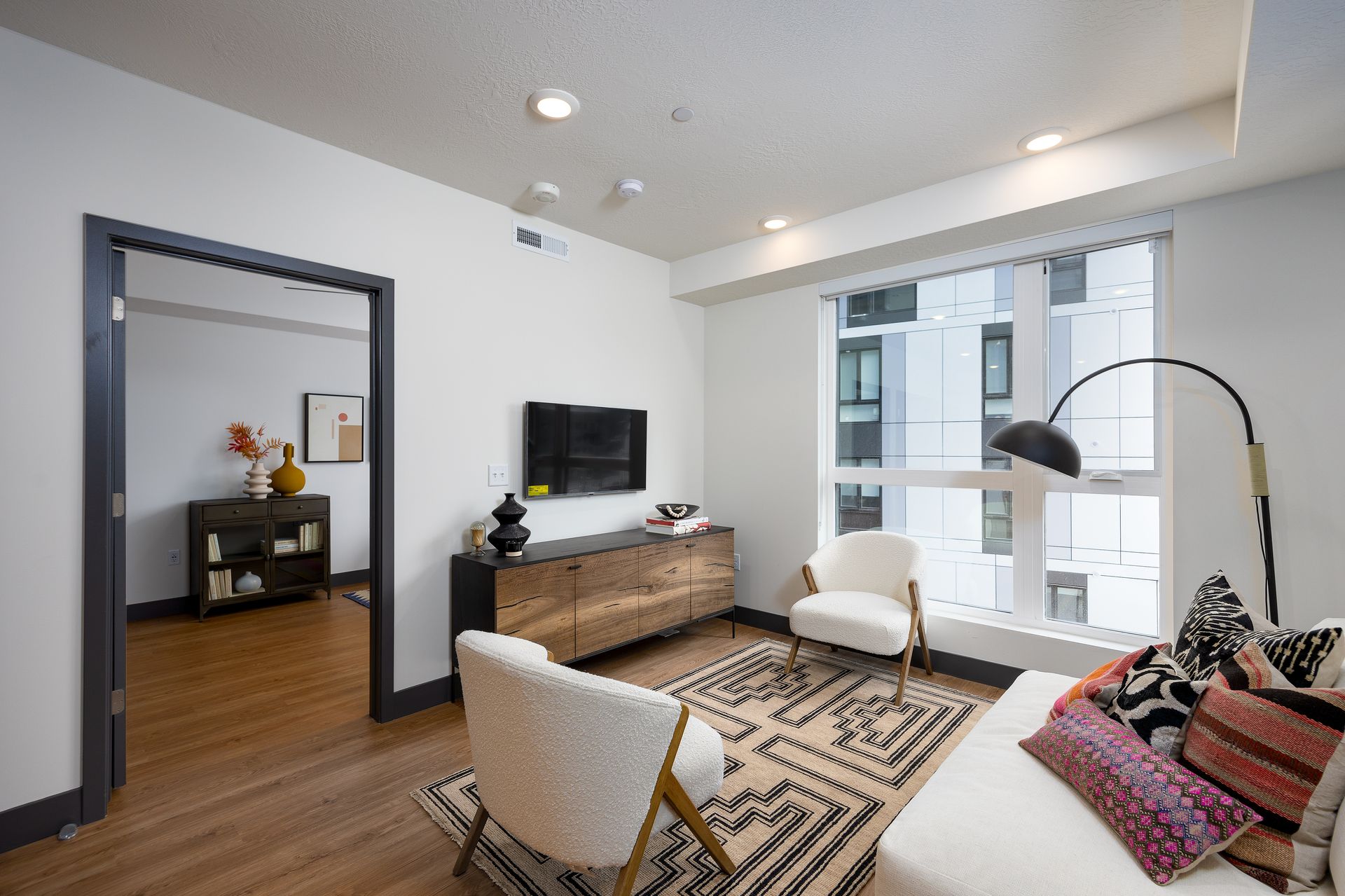 Ground floor retail options span the north tower’s walkway side, while the south tower houses two live-work units on its east side. McCloskey said these units are a great fit in mixed-use developments due to their flexible nature, with space befitting enterprises as varied as an ad agency, nail salon, or jewelry store. He said these units are invaluable for increasing housing density while creating an inviting commercial space buzzing with activity.